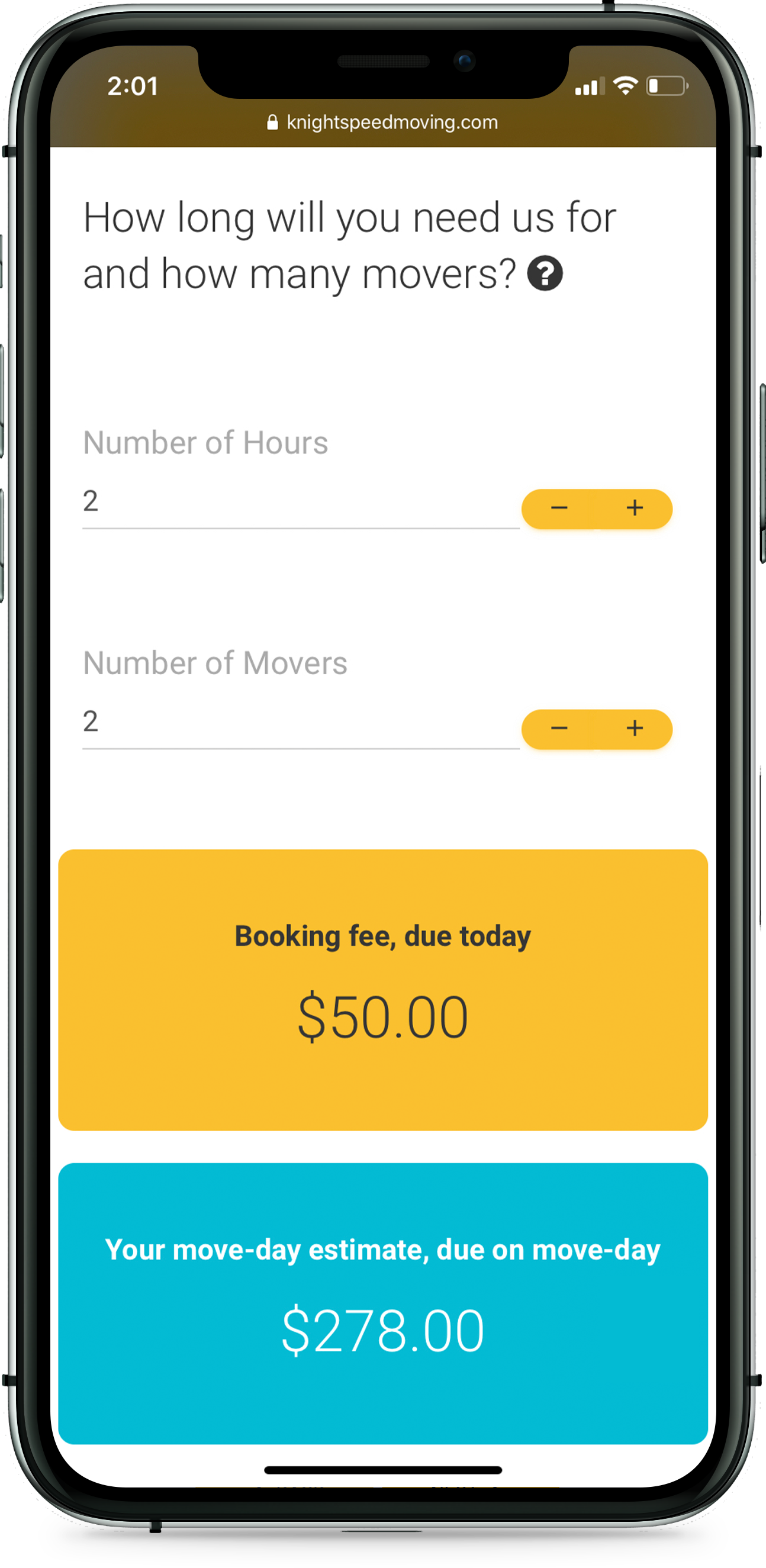 Use our price calculator to estimate the cost of your move. A Knightspeed team member will carefully review your request and adjust your quote if needed upon confirmation.